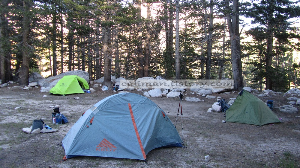 오늘밤 숙영지 Crabtree Meadow Junction에 텐트를 치고 피곤한 몸을 눕힌다 ↓