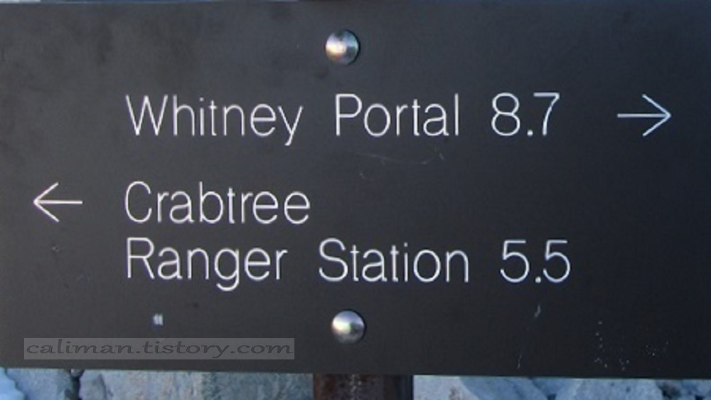 Whitney 정상을 찍고 내려와 오늘밤 야영지 Crabtree Meadow Junction으로 가야 한다 ↓