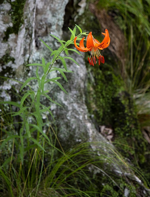 꽃은 6∼8월에 피는데, 가지 끝과 원줄기 끝에 1∼5개씩 밑을 향하여 달린다. 화피 갈래 조각은 바소꼴이고 6개이며 길이 4∼7cm, 나비 10∼15mm이다. 뒤쪽으로 젖혀지고, 안쪽에는 검은빛 또는 자줏빛 반점이 있다. 6개의 수술과 1개의 암술은 모두 꽃 밖으로 길게 나온다. 꽃밥은 노란빛을 띤 빨간색이며, 길이 10∼13mm이다.