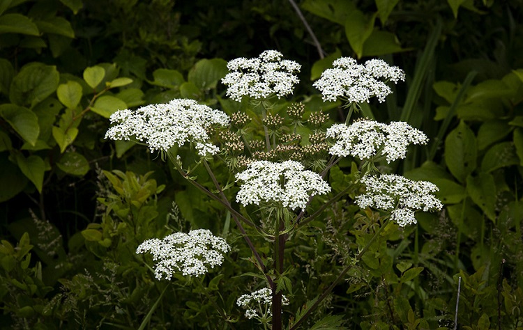 꽃은 6∼7월에 피고 흰색이며 원줄기 끝이나 가지 끝의 복산형꽃차례[複揀形花序]에 달리는데, 원줄기 끝의 꽃이삭이 가장 크다. 총포와 작은총포는 여러 개이고 잎 모양이며 가장자리가 희다. 씨방은 하위(下位)이다. 열매는 분열과로 달걀 모양이다.