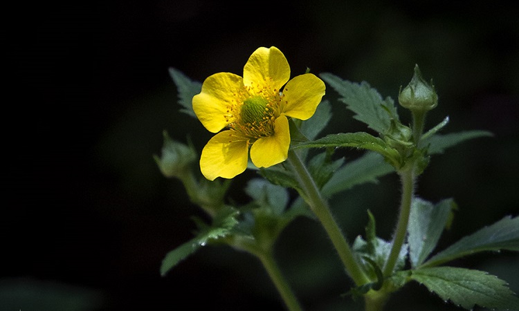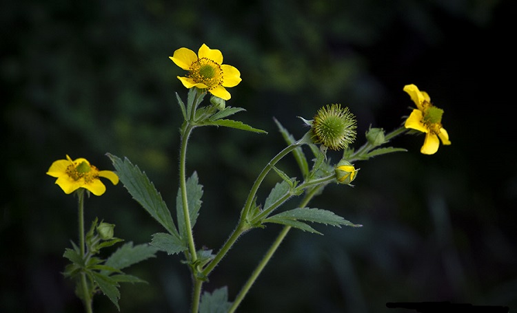 줄기에 달린 잎은 어긋나고 잎자루가 짧으며 3∼5개의 작은잎으로 구성된다. 턱잎은 넓은 달걀 모양이고 가장자리에 깊이 패어 들어간 모양의 톱니가 있다. 꽃은 6∼7월에 황색으로 피고 가지 끝에 1개씩 모두 3∼10개가 달린다. 꽃의 지름은 1.5∼2cm이고, 꽃받침 조각과 꽃잎, 그리고 부악편이 각각 5개이다. 과탁에 길이 1mm 정도의 털이 있다.