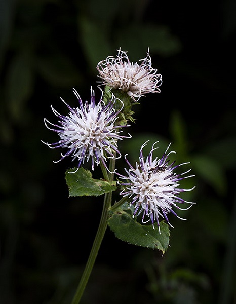 깊은 산 풀밭에서 자란다. 높이 50∼100cm이다. 뿌리가 굵고 땅속 깊은 곳까지 벋는다. 잎은 어긋나고 가운뎃부분의 잎은 달걀 모양이며, 끝이 뾰족하고 밑은 넓은 쐐기 모양이다. 길이 11∼16.5cm로서 털이 나고 가장자리는 바늘 모양의 톱니가 나거나 밋밋하다. 잎자루는 길이 4.5∼5cm이다.