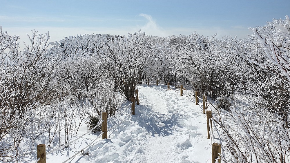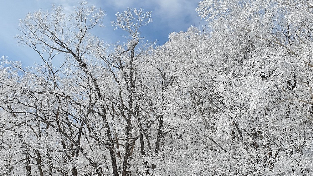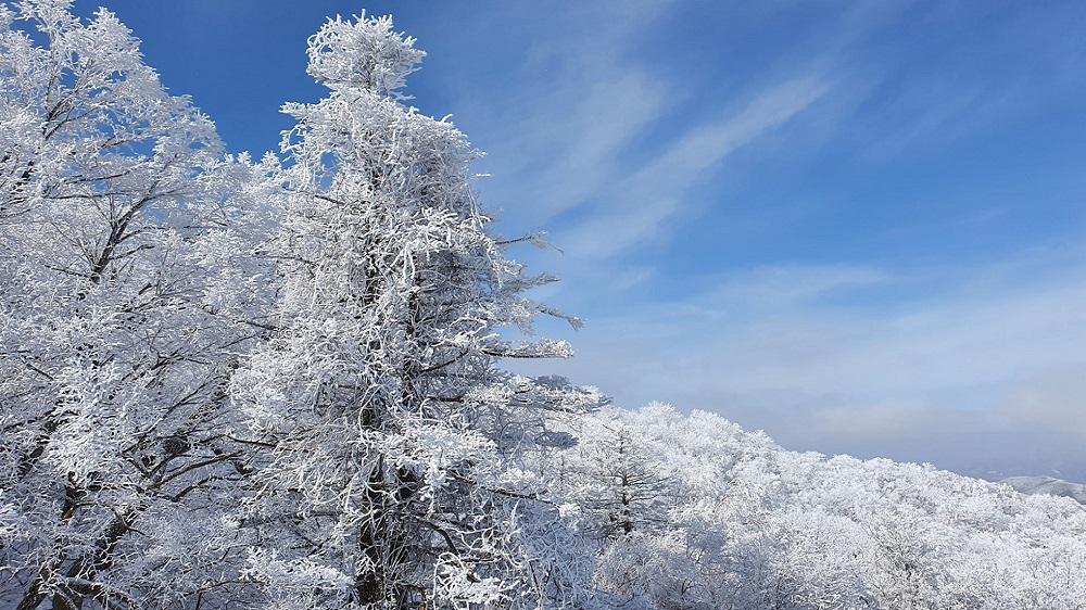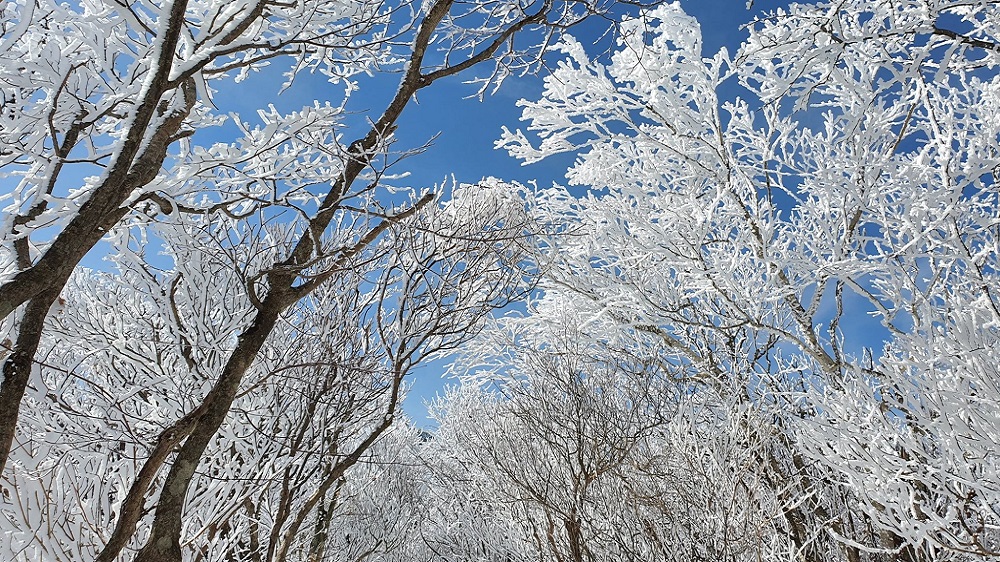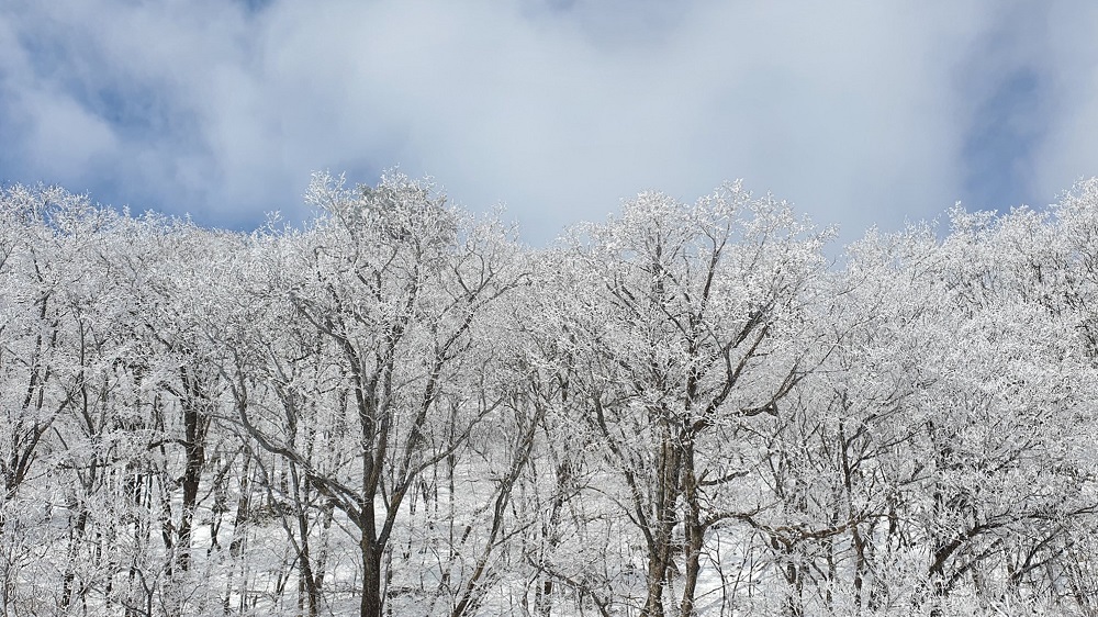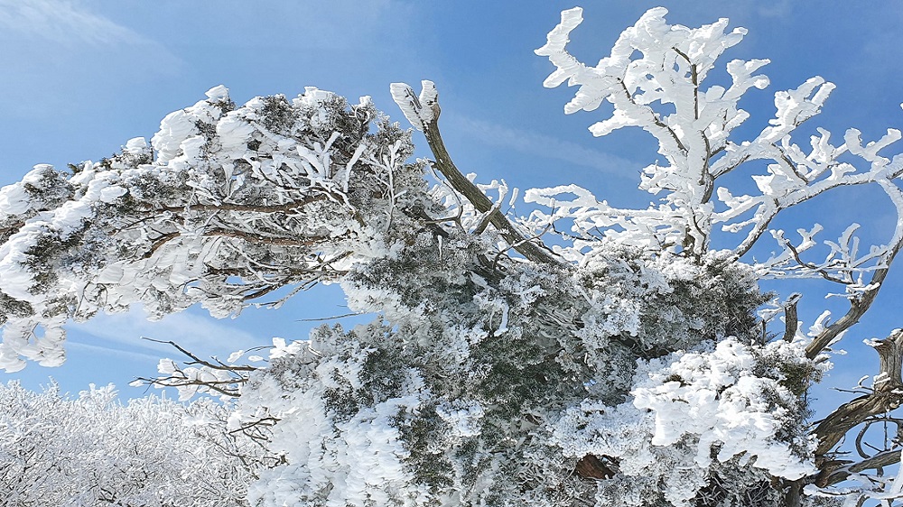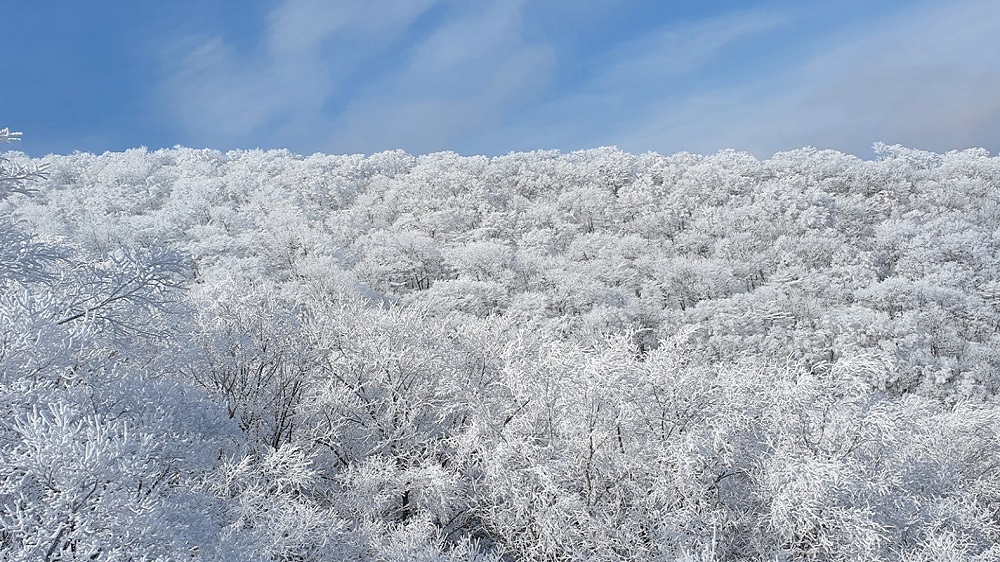 상고대는 영하의 온도에서 액체 상태로 존재하는 물방울이 나무와 만나 생기는 것으로 밤새 서린 서리가 하얗게 얼어붙어 마치 눈꽃처럼 피어 있는 것을 말한다.