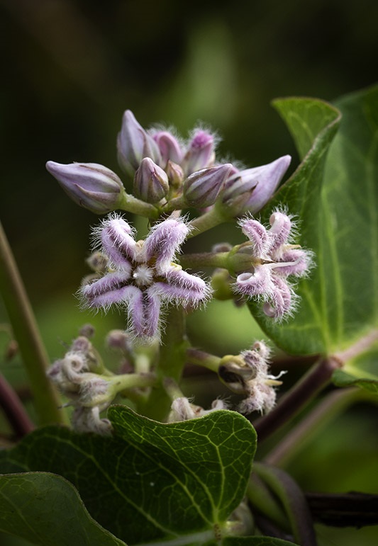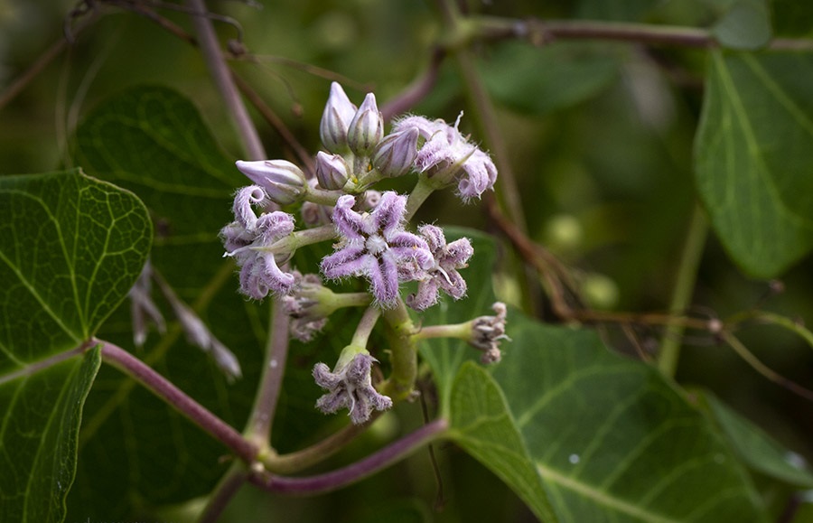 들판의 풀밭에서 자란다. 땅속줄기가 길게 벋어가고 여기서 자란 덩굴이 길이 3m 정도로 자라며, 자르면 흰젖 같은 유액(乳液)이 나온다. 잎은 마주나고 긴 심장형이며 가장자리가 밋밋하다. 잎 끝은 뾰족하고 뒷면은 분록색이며 잎자루는 길이 2∼5cm이다.