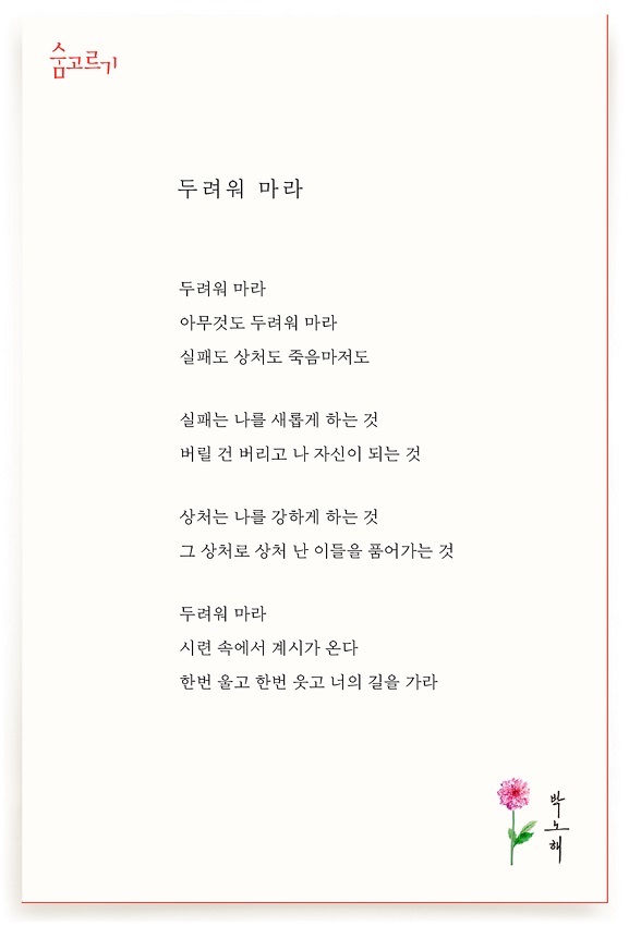 - 박노해 시인의 숨고르기 ‘두려워 마라’