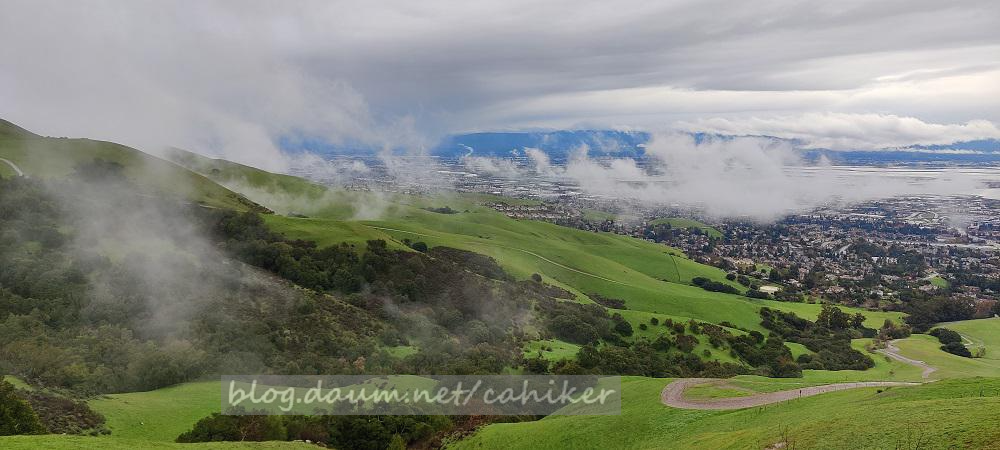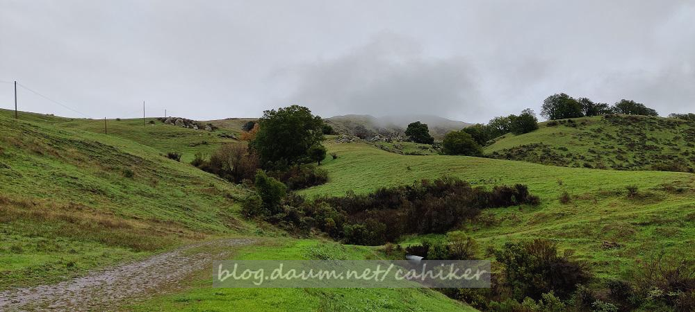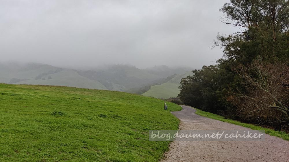비를 맞으며 질퍽한 Ohlone Wilderness Trail을 걸어서 오전 9시 55분 Mission Peak 도착 → 10시 하산 → 11시 05분 Parking Lot 도착
