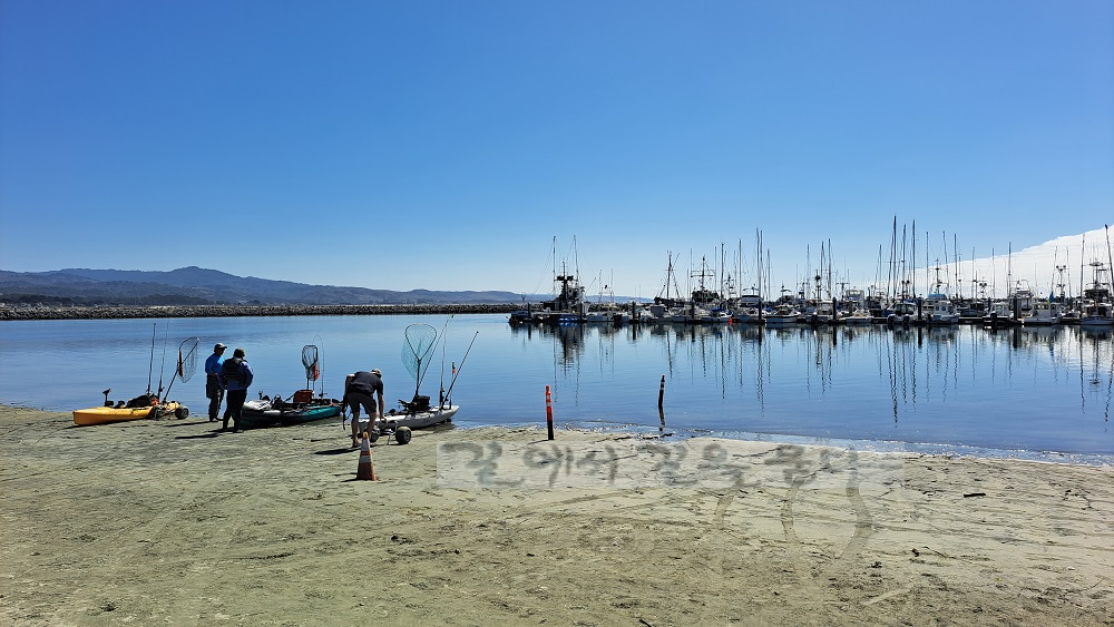 KAYAK을 빌려 낚시를 마친 중국인 부부가 들어오고 있다 ↓