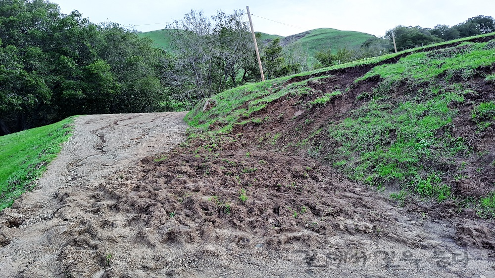폭우에 Trail이 망가졌는지 주의하라는 싸인판을 게이트 앞에 세워놨다. ↑