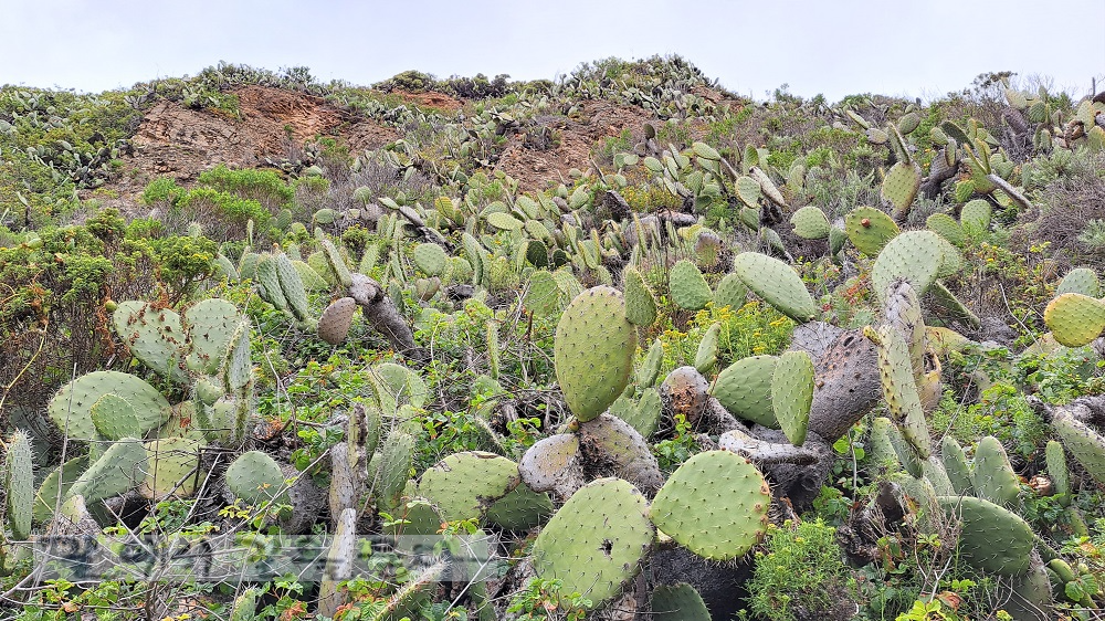 자연 번식으로 산 능선을 덮다시피 한 백년초 선인장 ↑ ↓