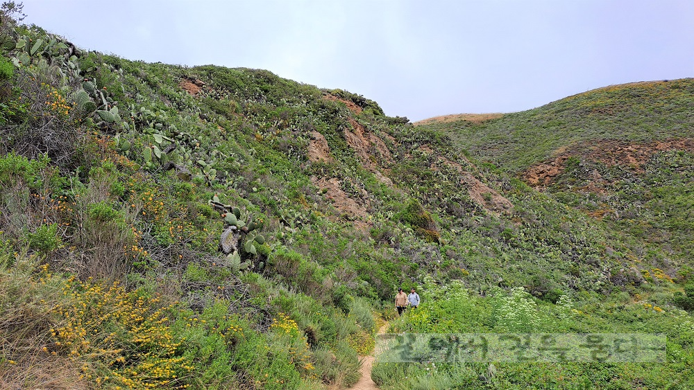 관리가 제대로 되지 않은 공원의 Trail Head에는 간이 화장실이 있다. 여기서 왼쪽으로 나있는 트레일을 따라가면 온갖 야생화가 눈을 어지럽히고, 자연 번식으로 산 능선을 덮다시피 한 백년초 선인장, 지저귀는 이름 모를 새들, 빽빽하게 서있는 레드우드 숲 사이 협곡의 트레일은 긴 시간 운전으로 뻐근해진 몸과 눈의 피로를 덜어준다.