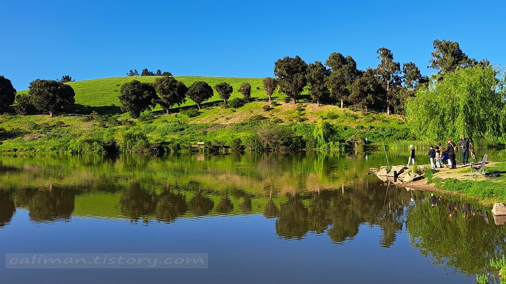 강태공들이 Trout(송어)를 잡기 위해 낚싯대를 드리우고 입질을 기다리고 있다 ↓