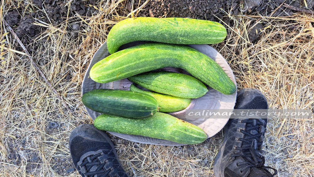 2024년 7월 24일, 아침 산책길에 이태리 이민자 패트릭 씨에게 얻은 Organic 오이 ↑ ↓
