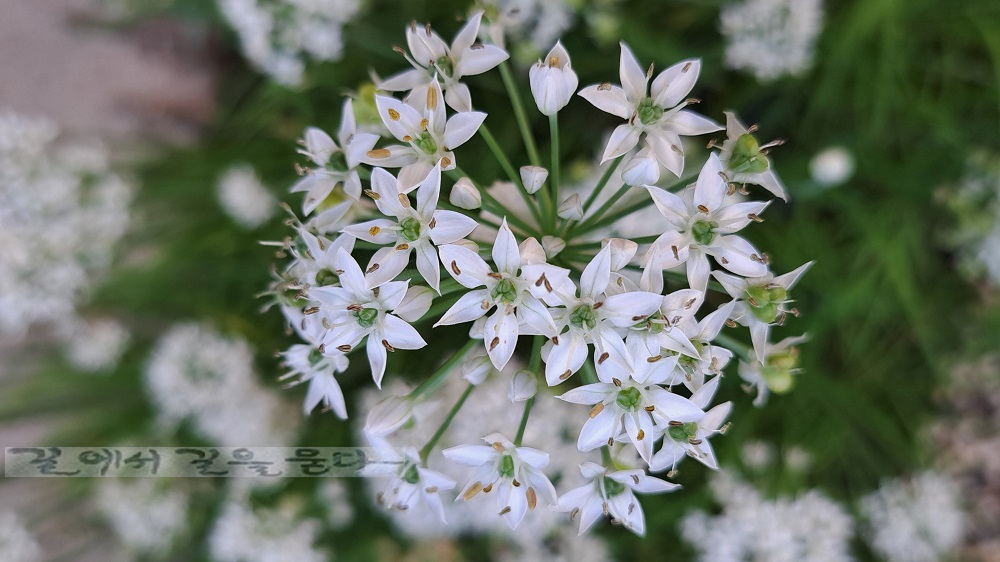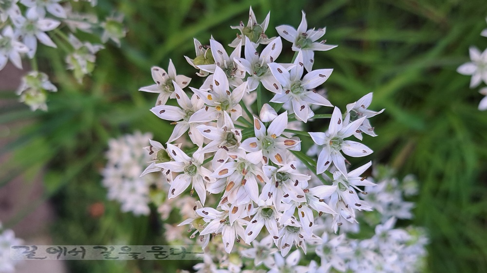 백합과에 속하는 다년생 초본으로 한 번만 종자(種子)를 뿌리면 다음 해부턴 뿌리에서 싹이 돋아나 계속 자란다. 꽃은 7∼8월에 피고 흰색이며 지름 6∼7mm, 수평으로 퍼지고 작은 꽃자루가 길다. 화피갈래조각과 수술은 6개씩이고 꽃밥은 노란색이다. 열매는 삭과(蒴果)로 거꾸로 된 심장(心臟) 모양이고 포배(胞背)로 터져서 6개의 검은색 종자가 나온다.