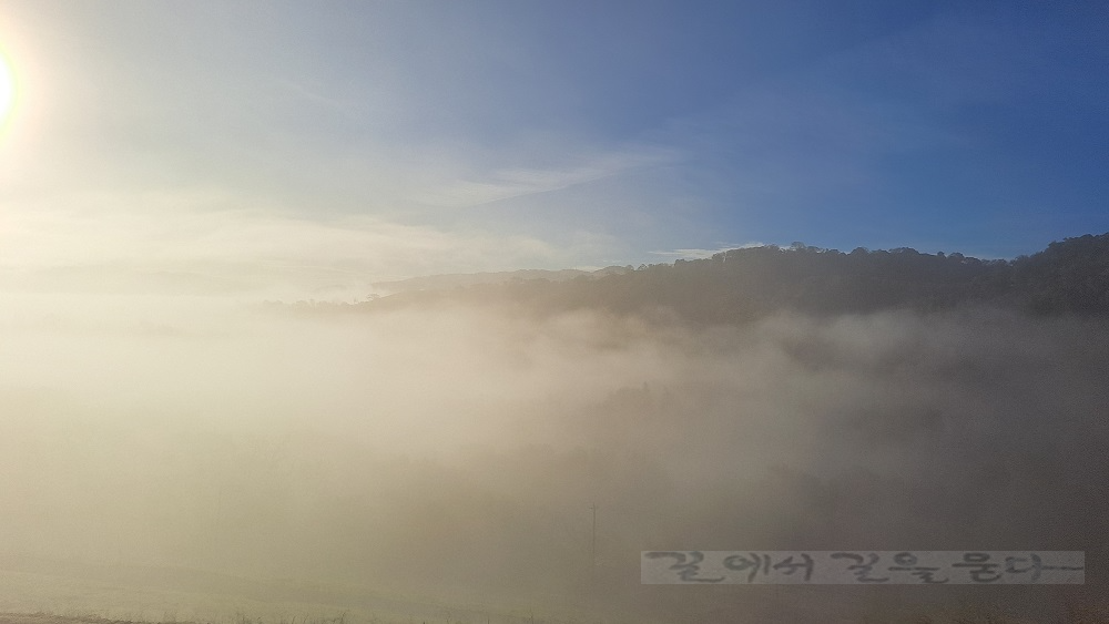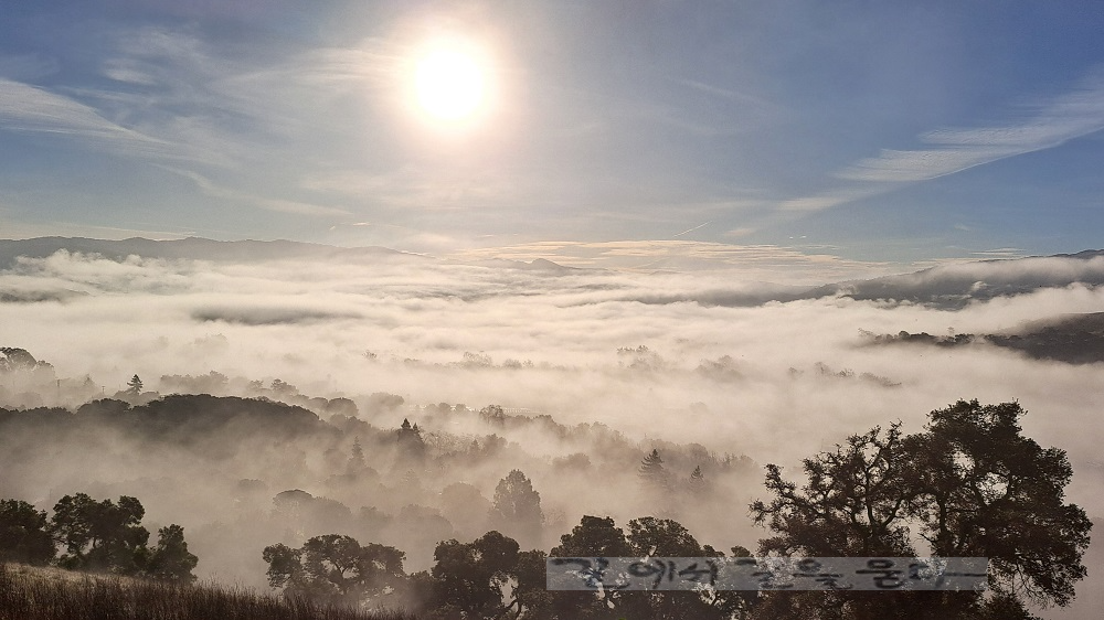 한 폭의 수묵화를 보는 듯 짙은 안개가 작은 도시 Sunol을 덮고 있다. ↑ ↓