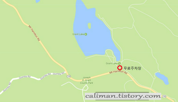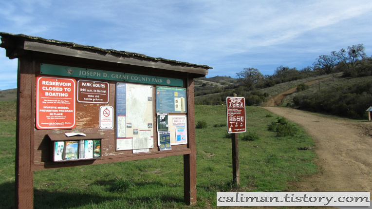 Mount Hamilton Road로 우회전 하여 좁고 꼬불 꼬불 한 길을 따라(자전거, 오토바이 조심) 약 8 마일을 가면 오른쪽에 입장료를 내는 Joseph D.Grant 공원 입구가 보이는데 이곳을 지나쳐서 약 1/4마일가량 더 가면 왼쪽으로 널찍한 무료주차장이 보인다. 주차장으로 좌회전하여 차를 세운 후 게시판에 비치된 트레일 맵을 참고하여 산행거리와 코스를 정한 후 산행을 시작하면 된다.